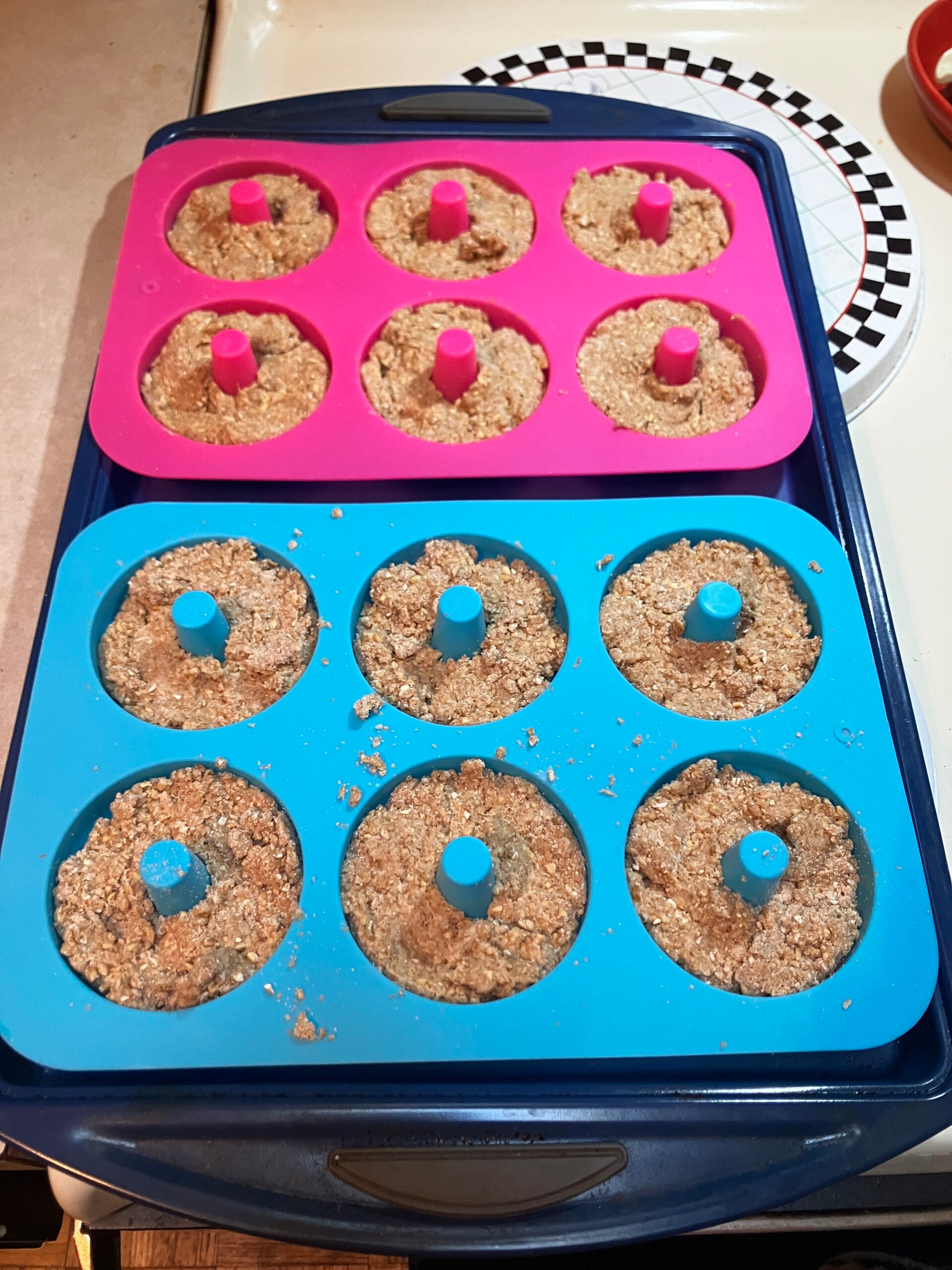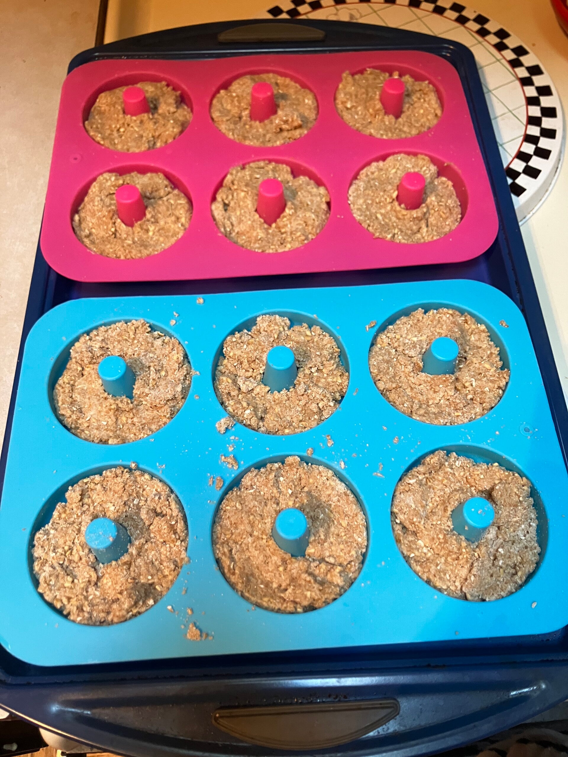 Made with natural unsweetend apple sauce, organic oatmeal, whole wheat flour and free range eggs, and opped with a natural peanut butter glaze frosting. Dogs can enjoy a morning donut with their pawents.